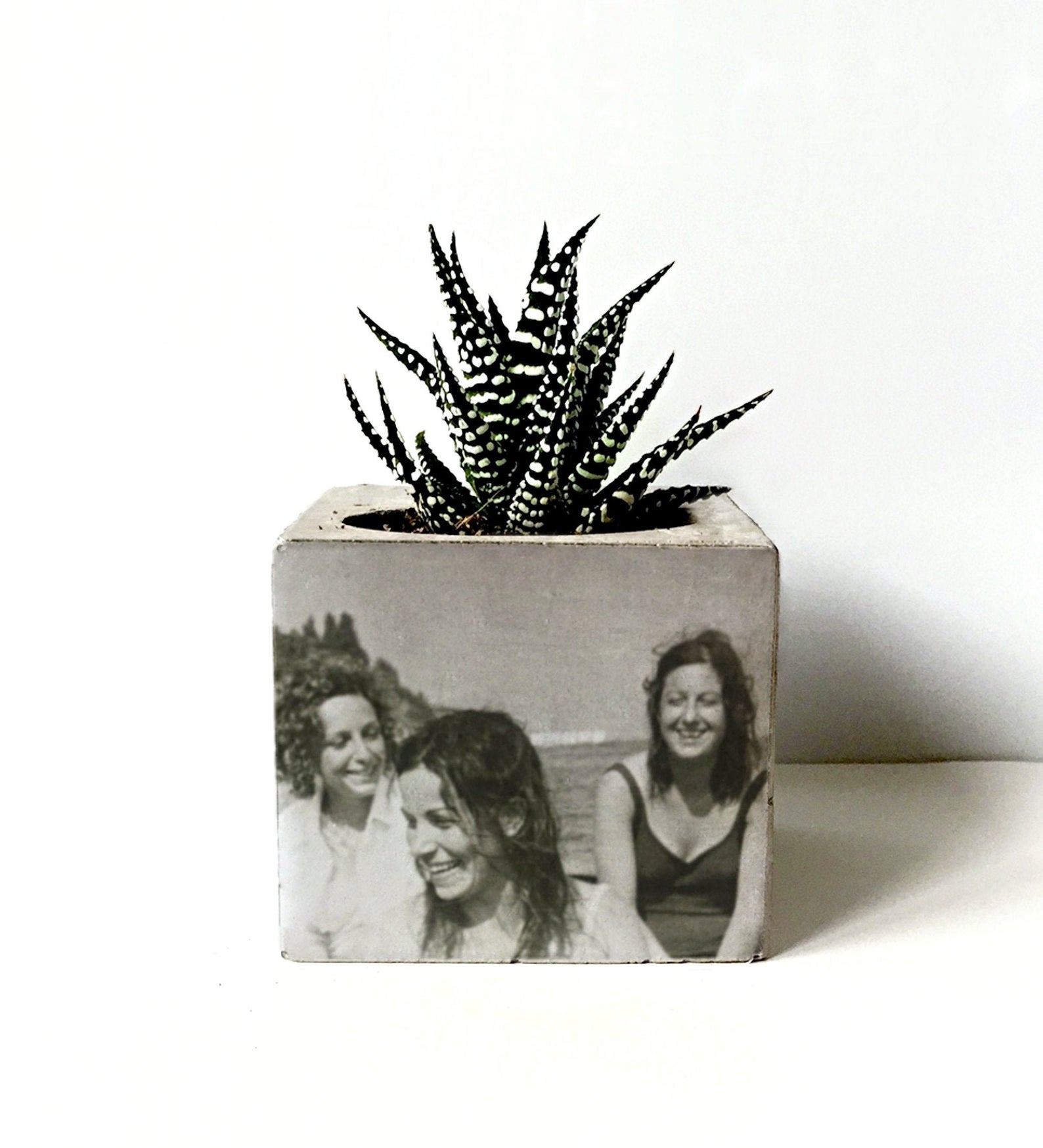 This customizable concrete planter with a little air plant.
