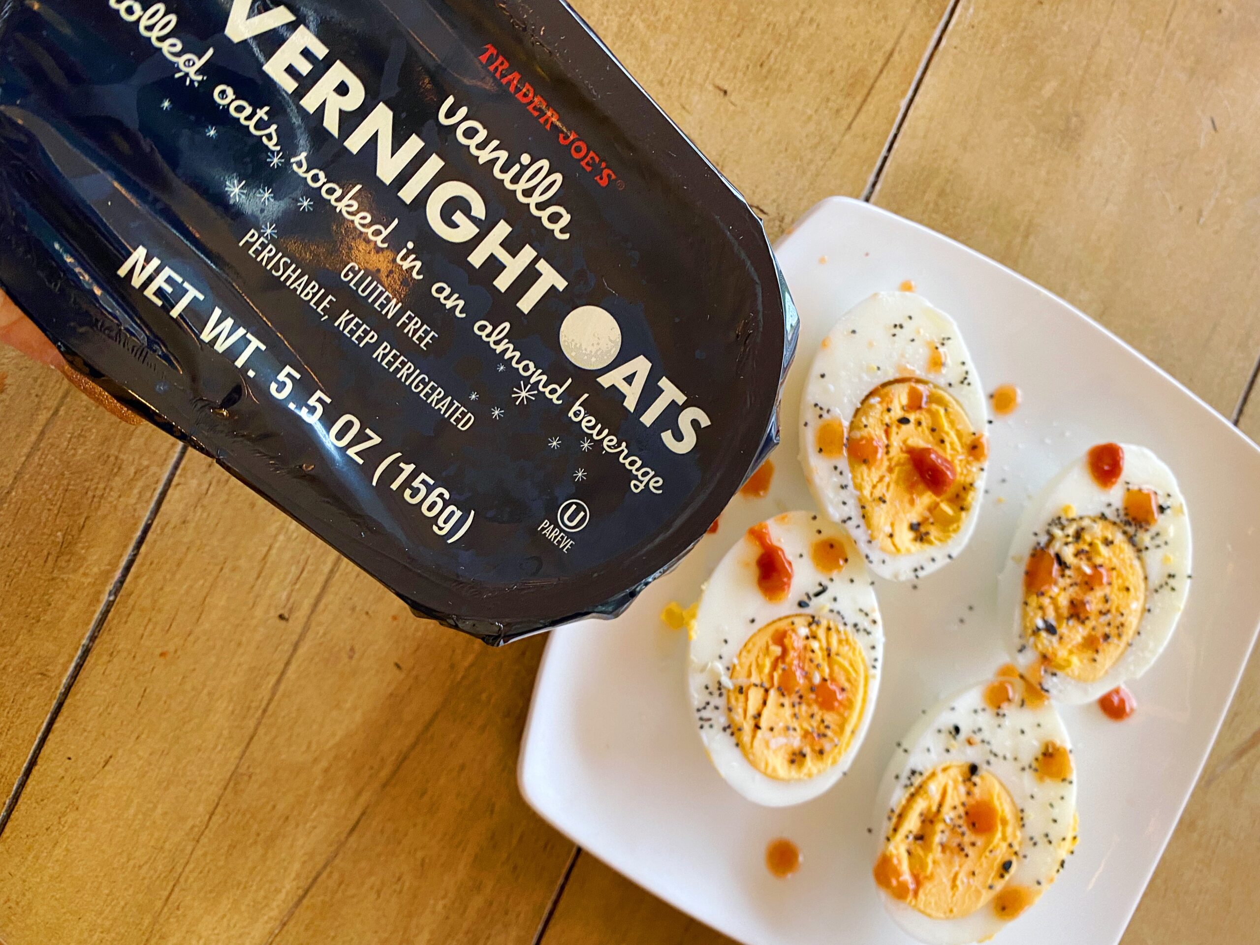 10am: Breakfast! Two hard boiled eggs with a Trader Joeās overnight oats. I also take my supplements and drink another decaf coffee while talking to 1:1 clients